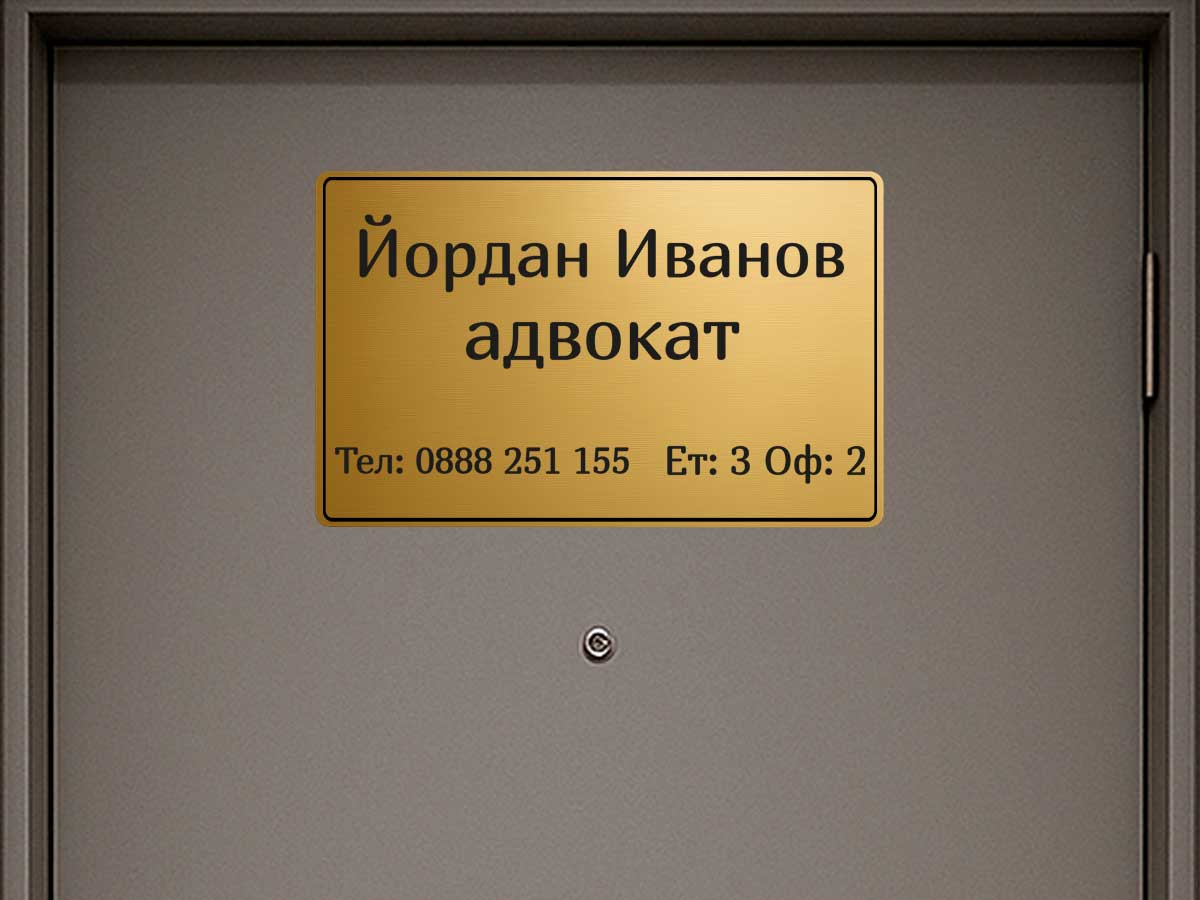 Персонализирана табела от златист ABS с UV печат с Ваш текст. Въведете текста, а ние ще направим възможно най-доброто оформление и разположение и ще Ви доставим готовия продукт.