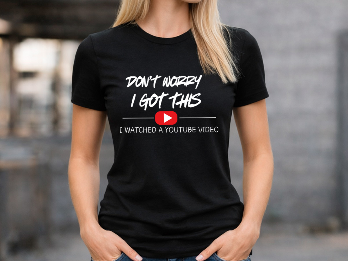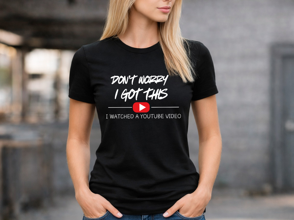 Забавна дамска черна тениска „Don’t Worry I Got This – I Watched a YouTube Video“ с модерен дизайн, вдъхновен от интернет културата.