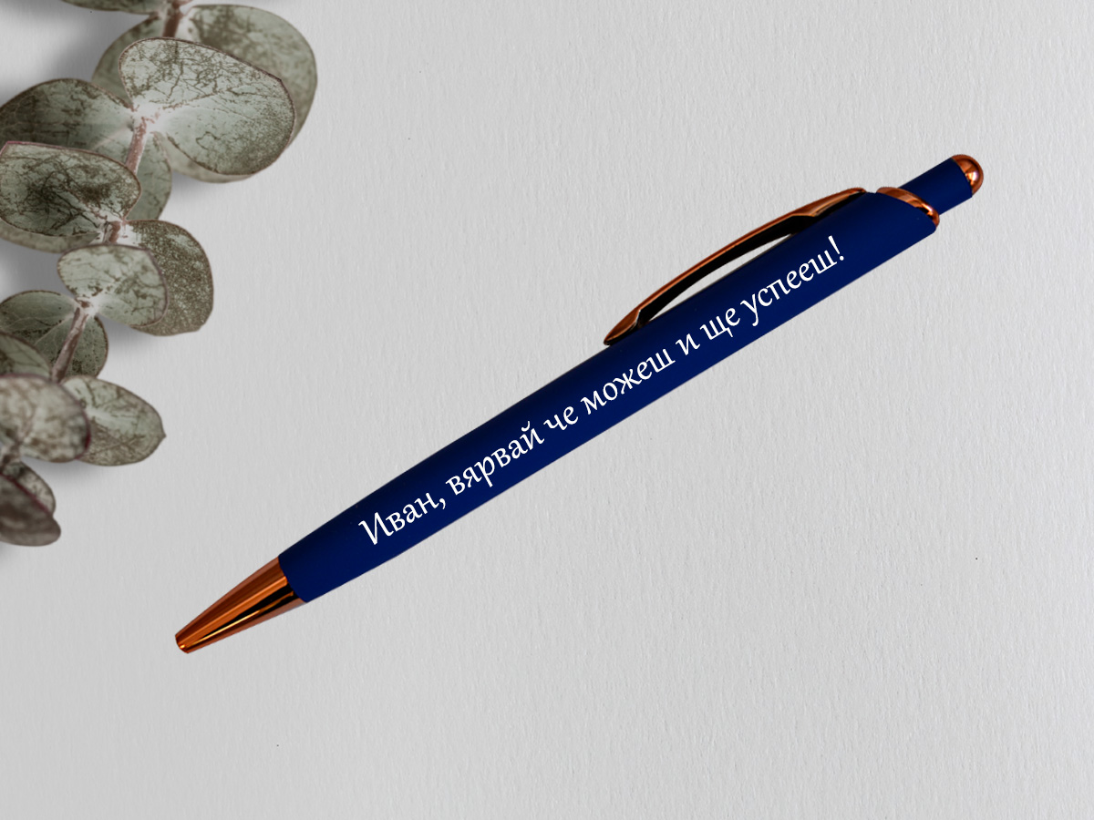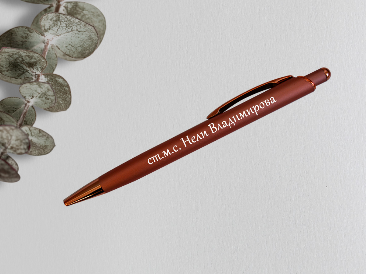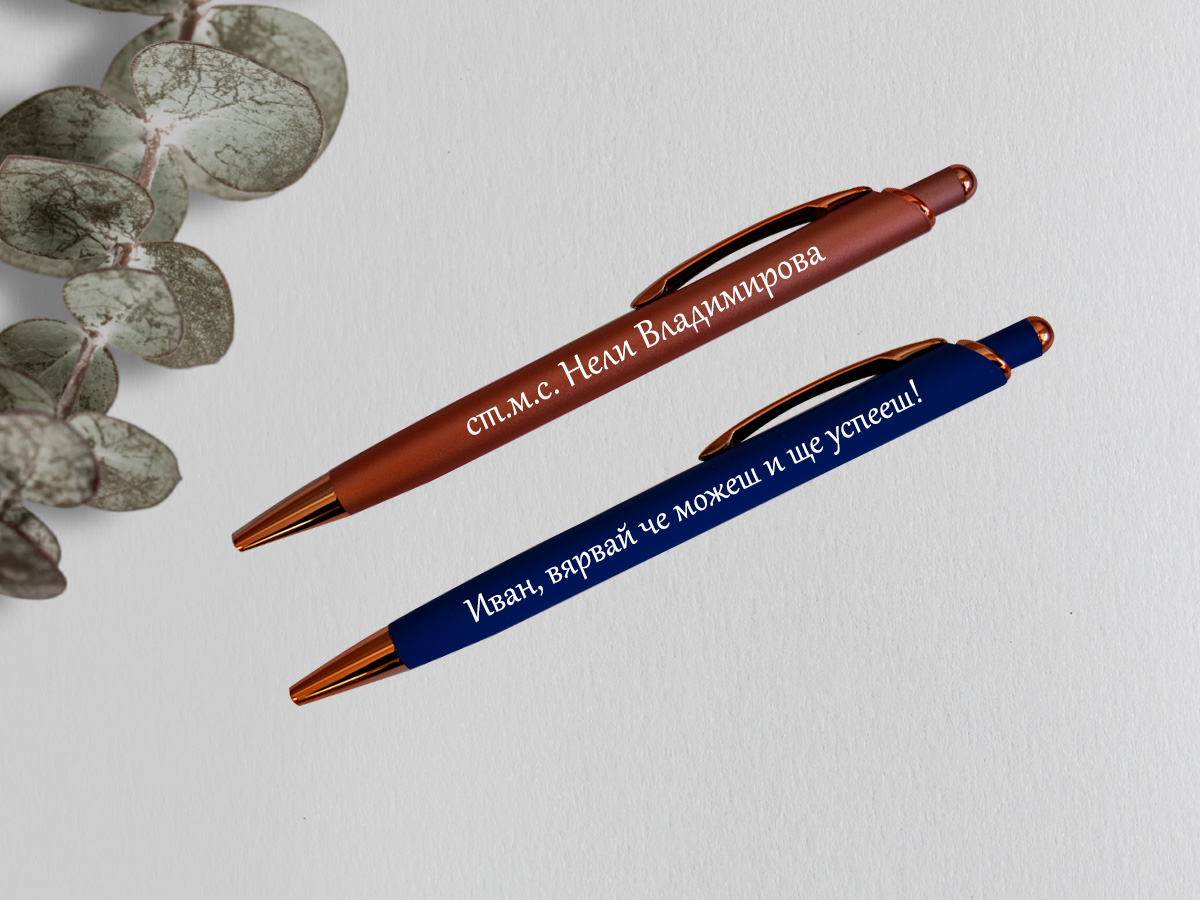 Метален гравиран химикал НМ-18 в два цвята – син и розов. Персонализиран текст по избор – стилен, практичен и издръжлив. Подходящ за личен подарък, корпоративни събития или рекламни кампании.