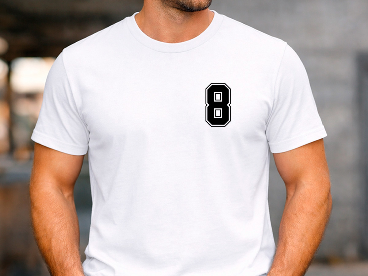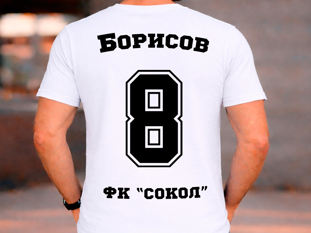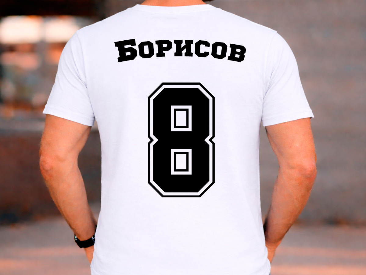Персонализирана мъжка тениска с име, номер и възможност за добавяне на име на отбор – идеален подарък за спортни фенове, отбори или групи.