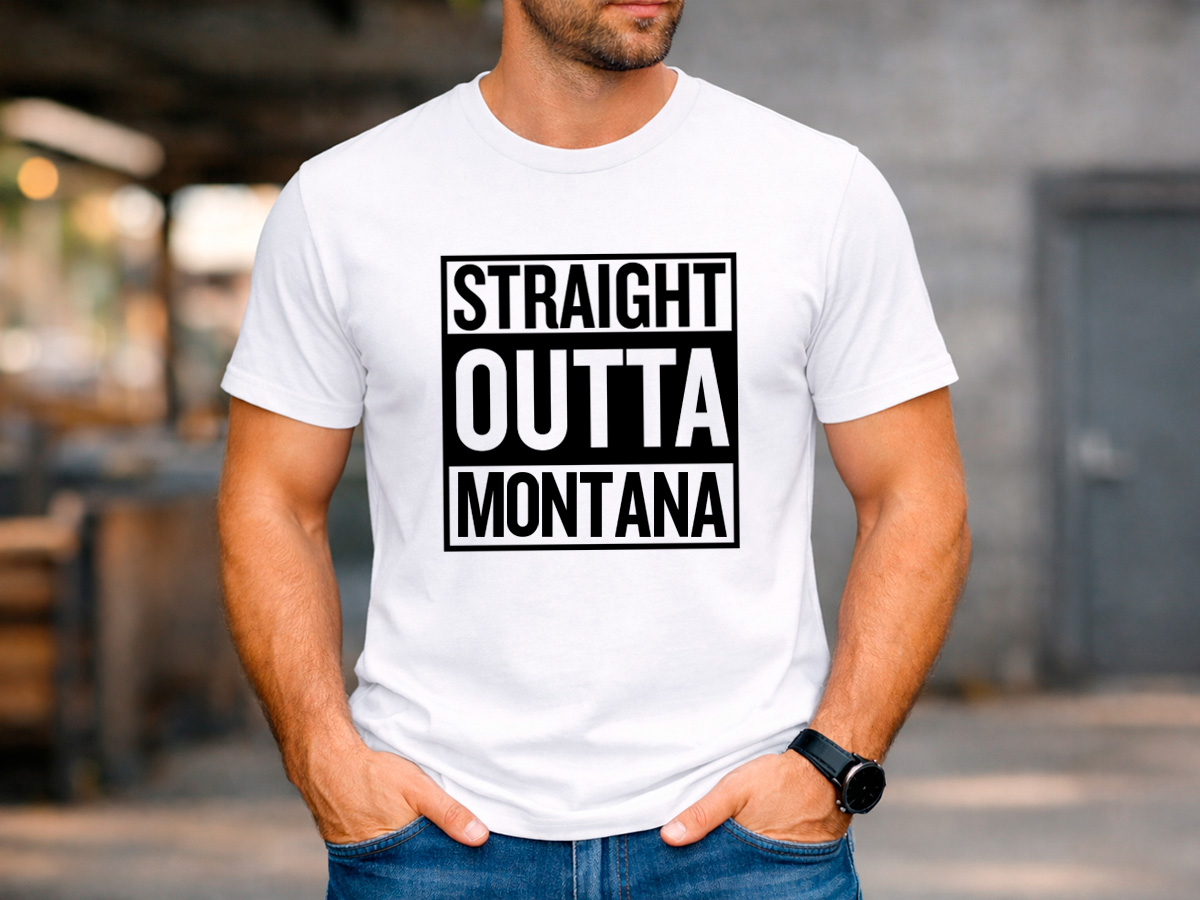 Персонализирана мъжка тениска “Straight Outta” с възможност за добавяне на град по избор – идеален подарък и стилен streetwear акцент.