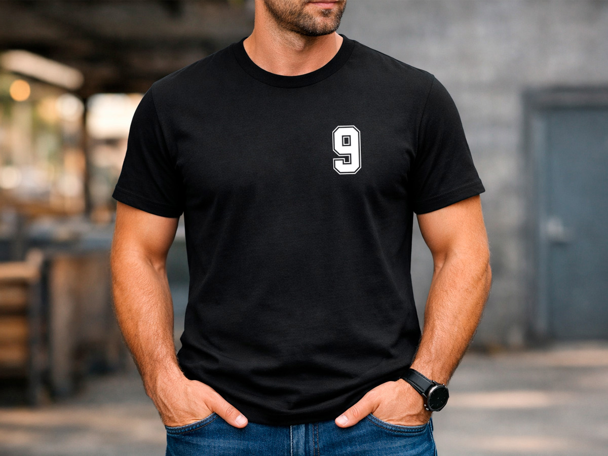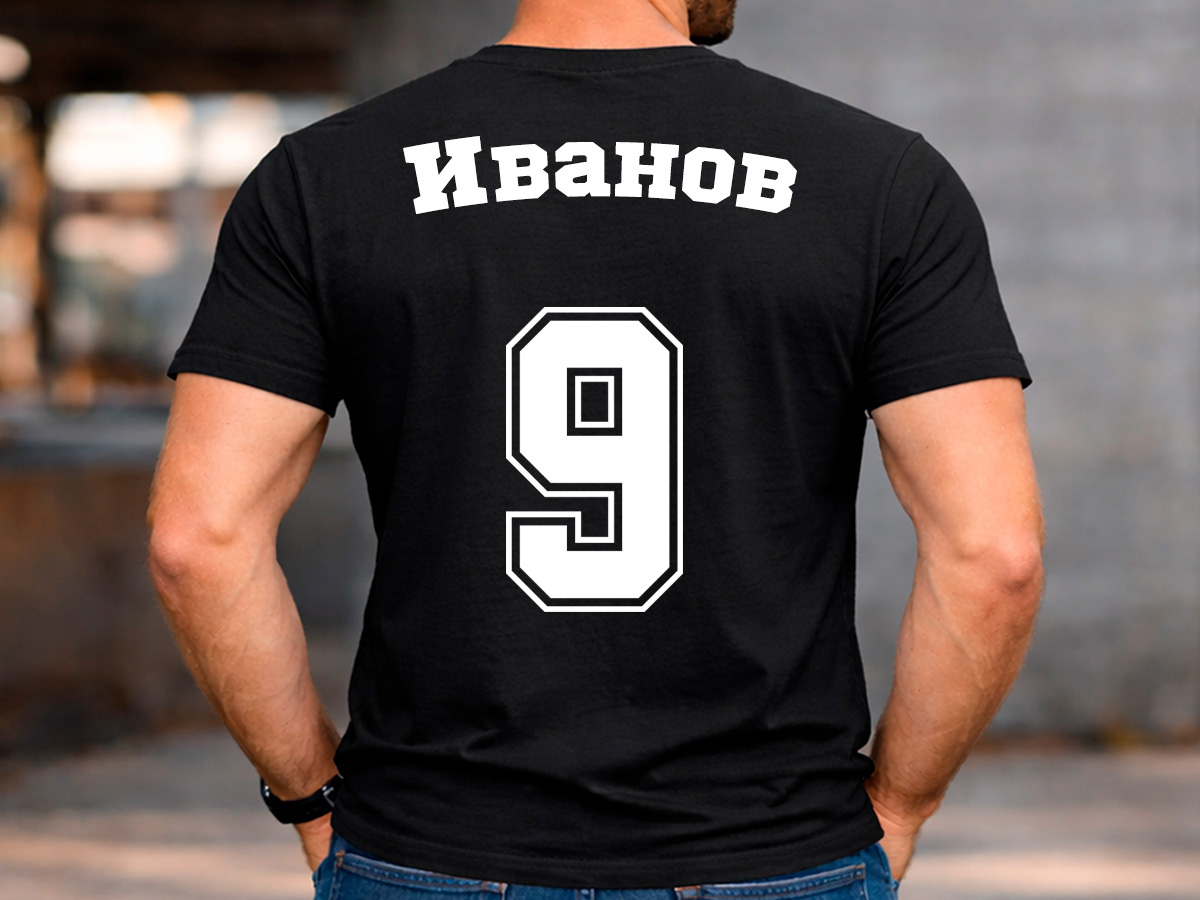 Персонализирана мъжка тениска с име, номер и възможност за добавяне на име на отбор – идеален подарък за спортни фенове, отбори или групи.