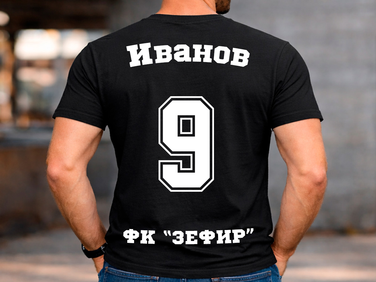 Дизайн: Име, номер, име на отбор (по избор)