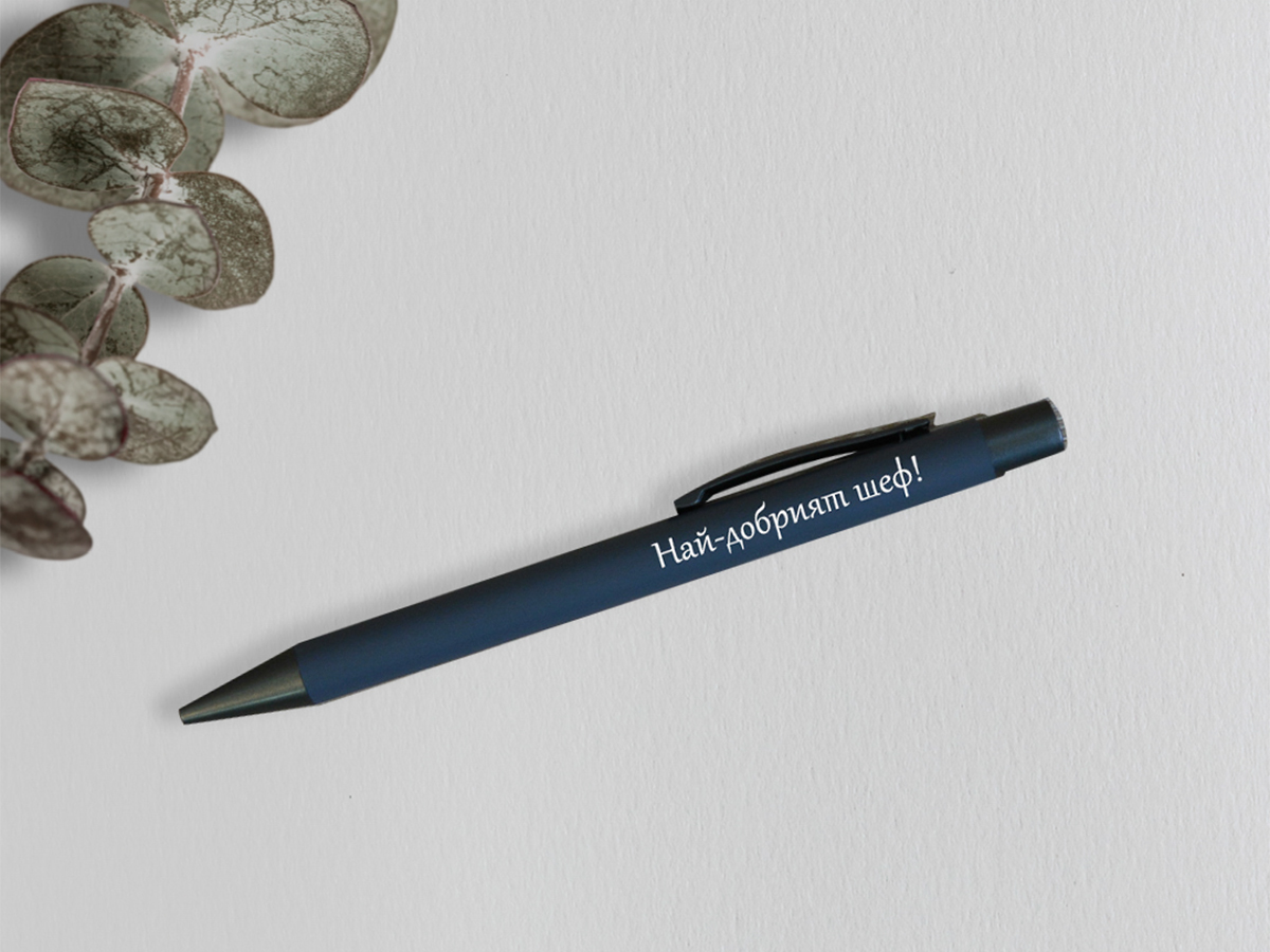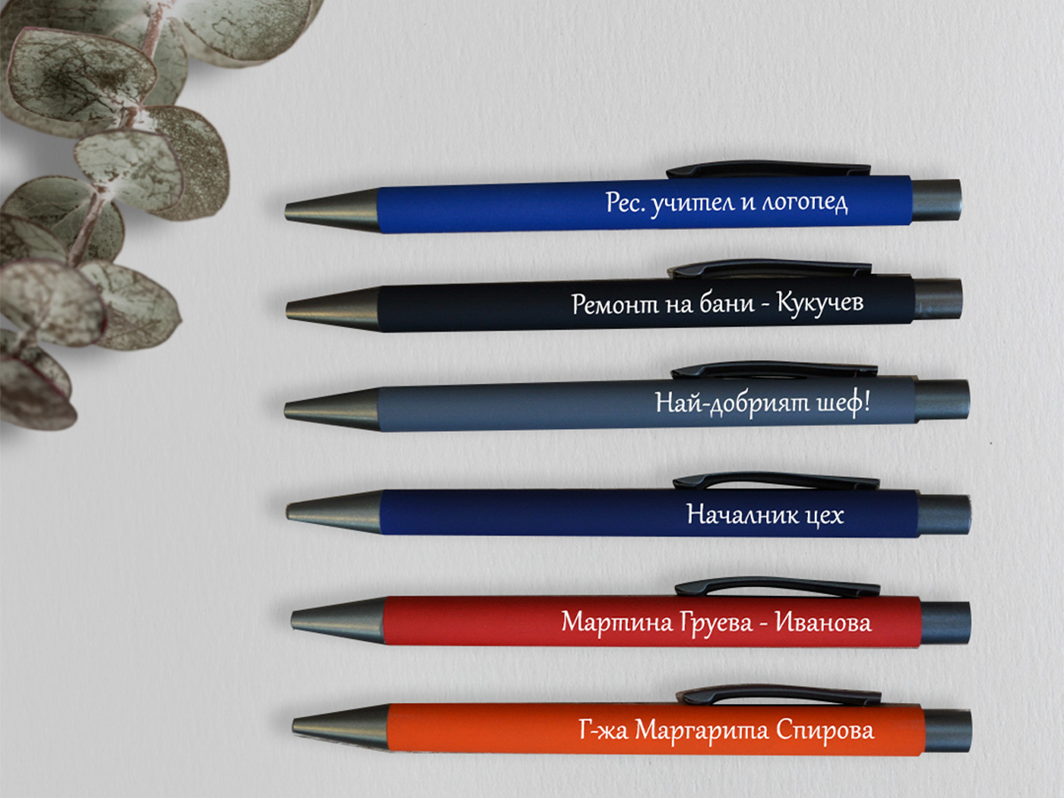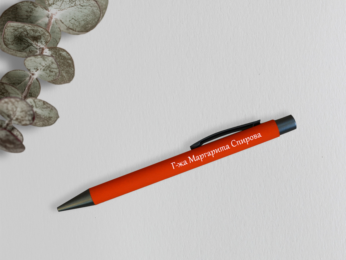Метален гравиран химикал с персонализиран текст по избор – стилен, практичен и издръжлив. Предлага се в 6 цвята – оранжев, сив, син, тъмно син, червен и черен. Подходящ за личен подарък, корпоративни събития или рекламни кампании.