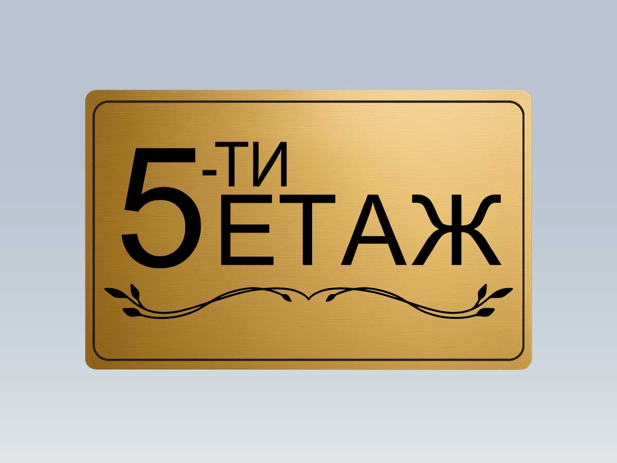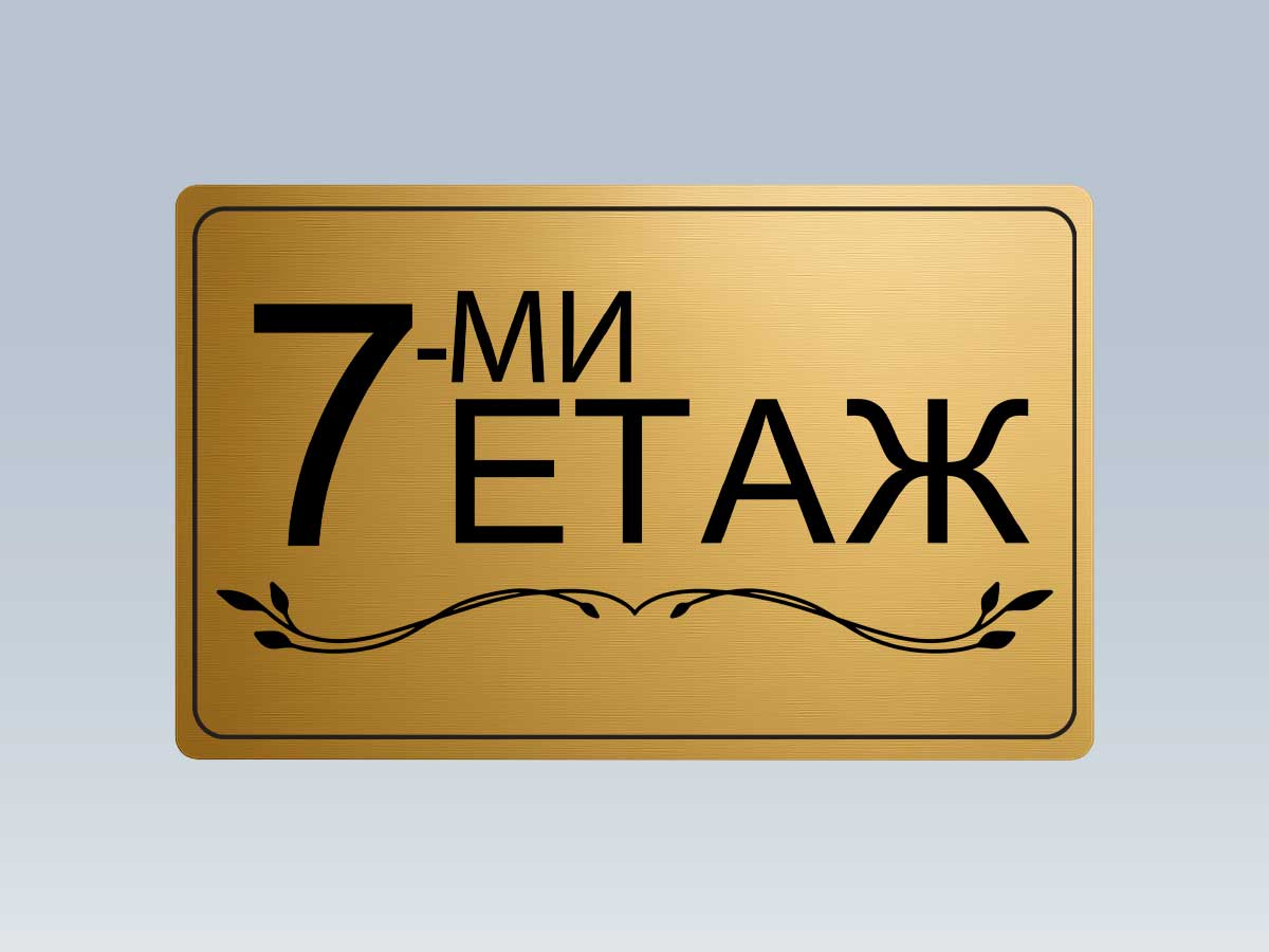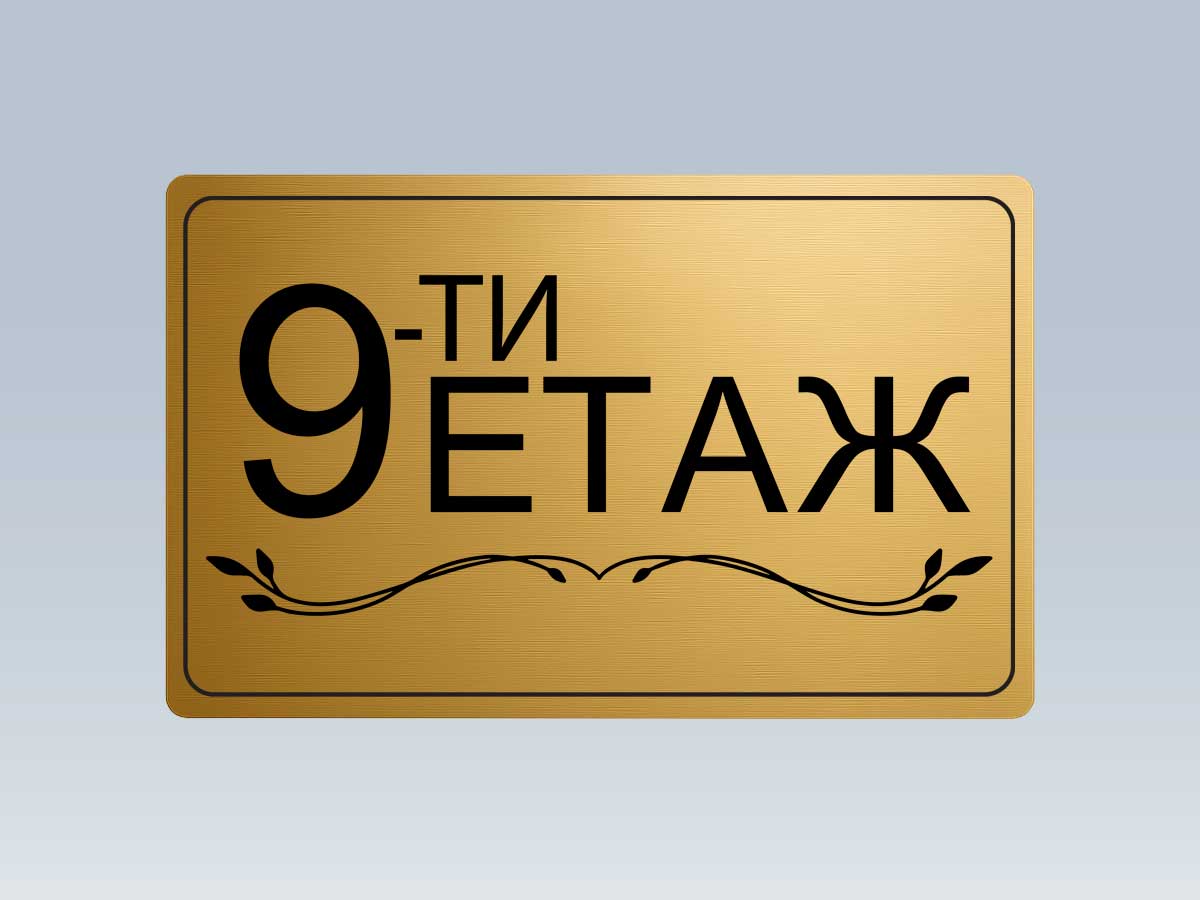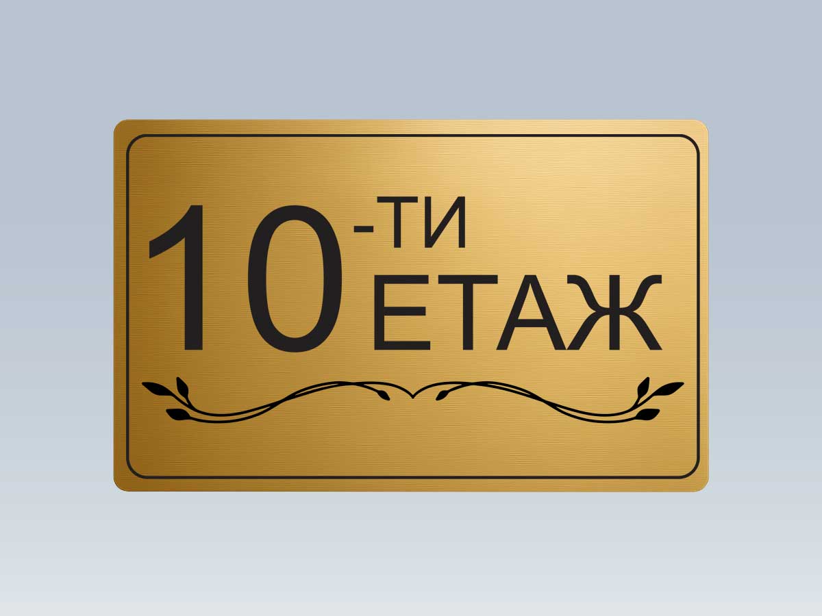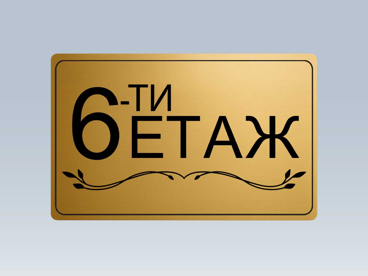 Стилна етажна табела от златист АБС с UV печат, предназначена за обозначаване на етажи в жилищни сгради, офиси и хотели.