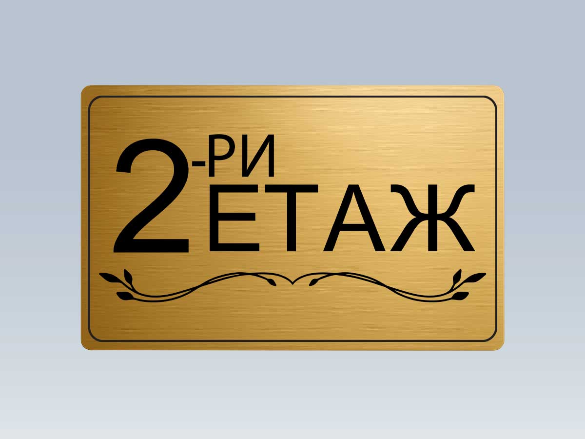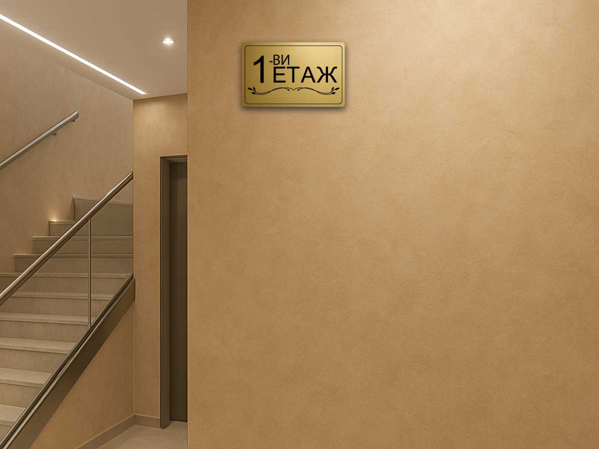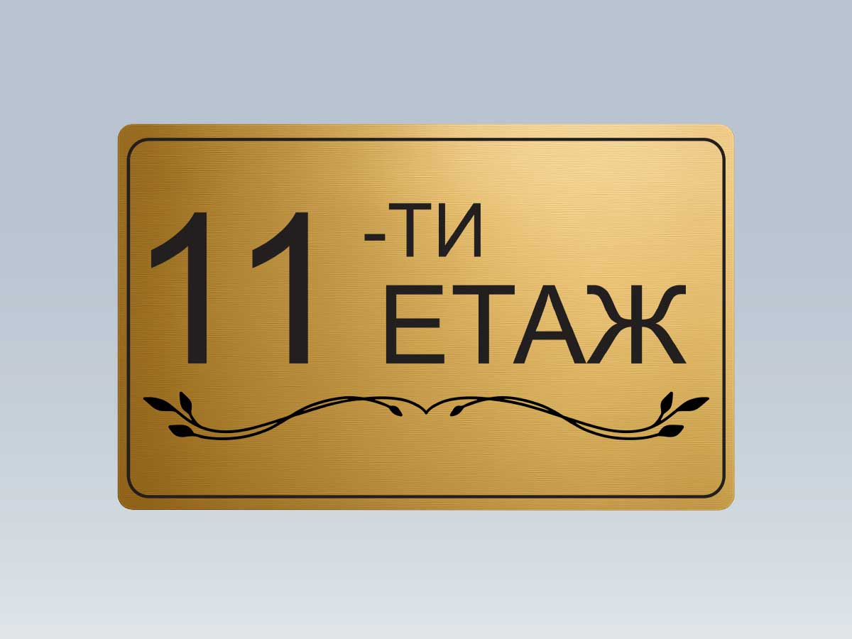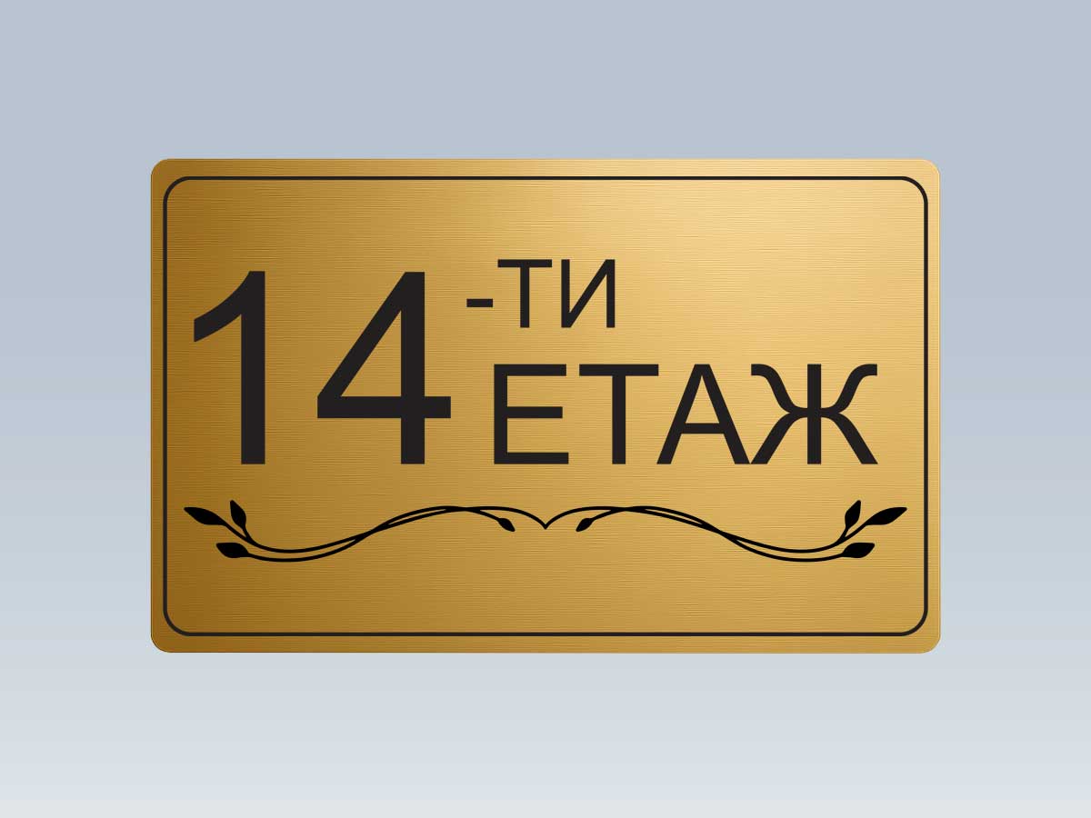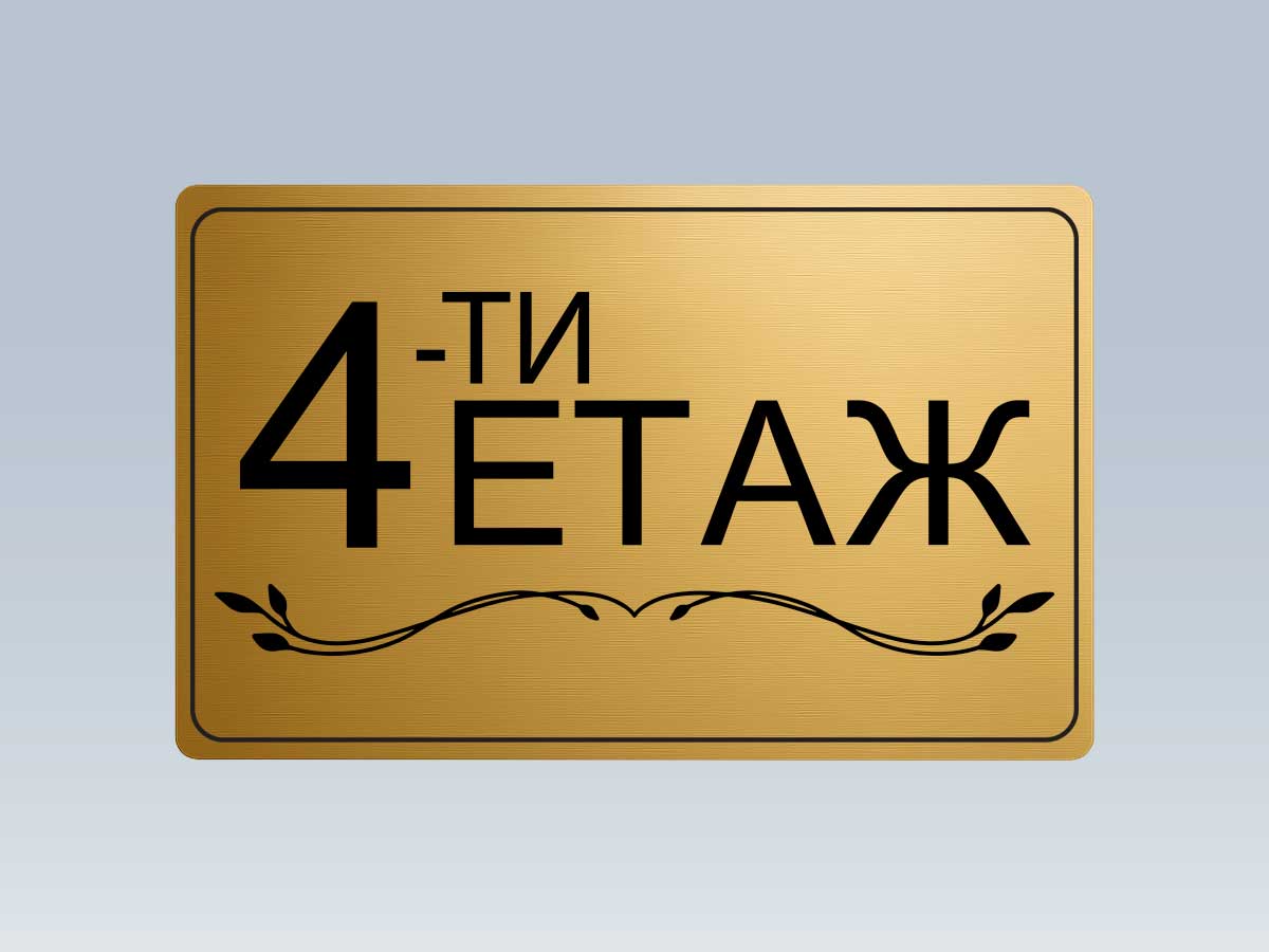 Стилна етажна табела от златист АБС с UV печат, предназначена за обозначаване на етажи в жилищни сгради, офиси и хотели.