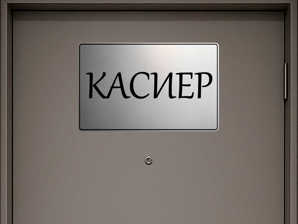 Табела за кабинет с надпис „Касиер“ от сребрист ABS с UV печат . Размери 33х17см. Лесно захващане чрез двойнолепяща лента.