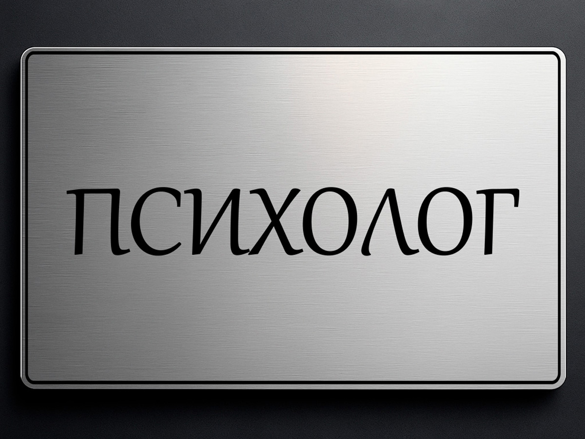 Табела за кабинет с надпис „Психолог“ от сребрист ABS с UV печат . Размери 33х17см. Лесно захващане чрез двойнолепяща лента.