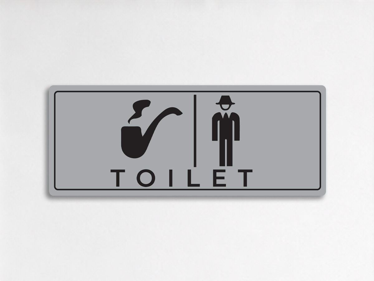 Табела TOILET от ABS с UV печат, с модерни пиктограми за мъже. Здрава, лека и устойчива. Монтаж с двойнозалепваща лепенка – бързо и лесно поставяне без пробиване. Два размера – 17х6 и 20х8см.