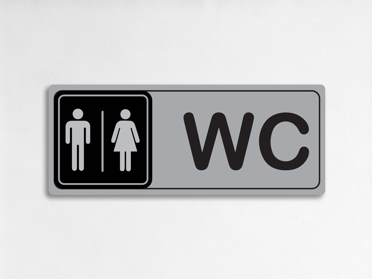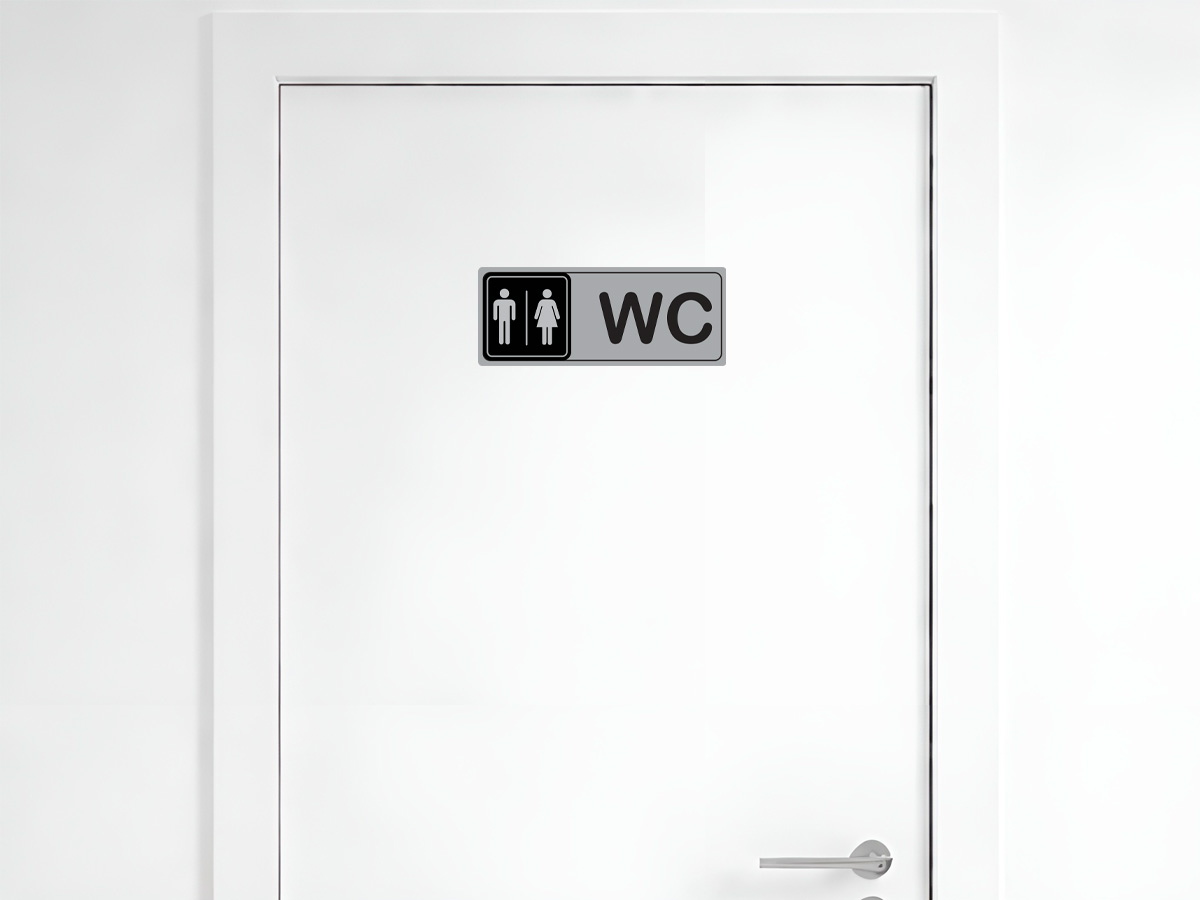 Табела WC от ABS с UV печат и пиктограми за мъже и жени. Лека, здрава и устойчива. Монтаж с двойнозалепваща лепенка – без пробиване. Два размера – 17х6 и 20х8см.