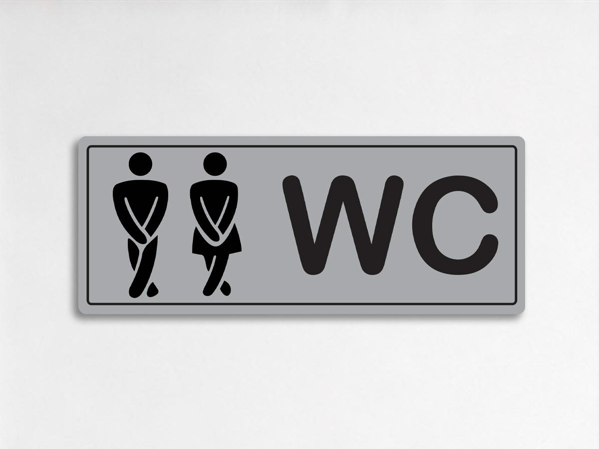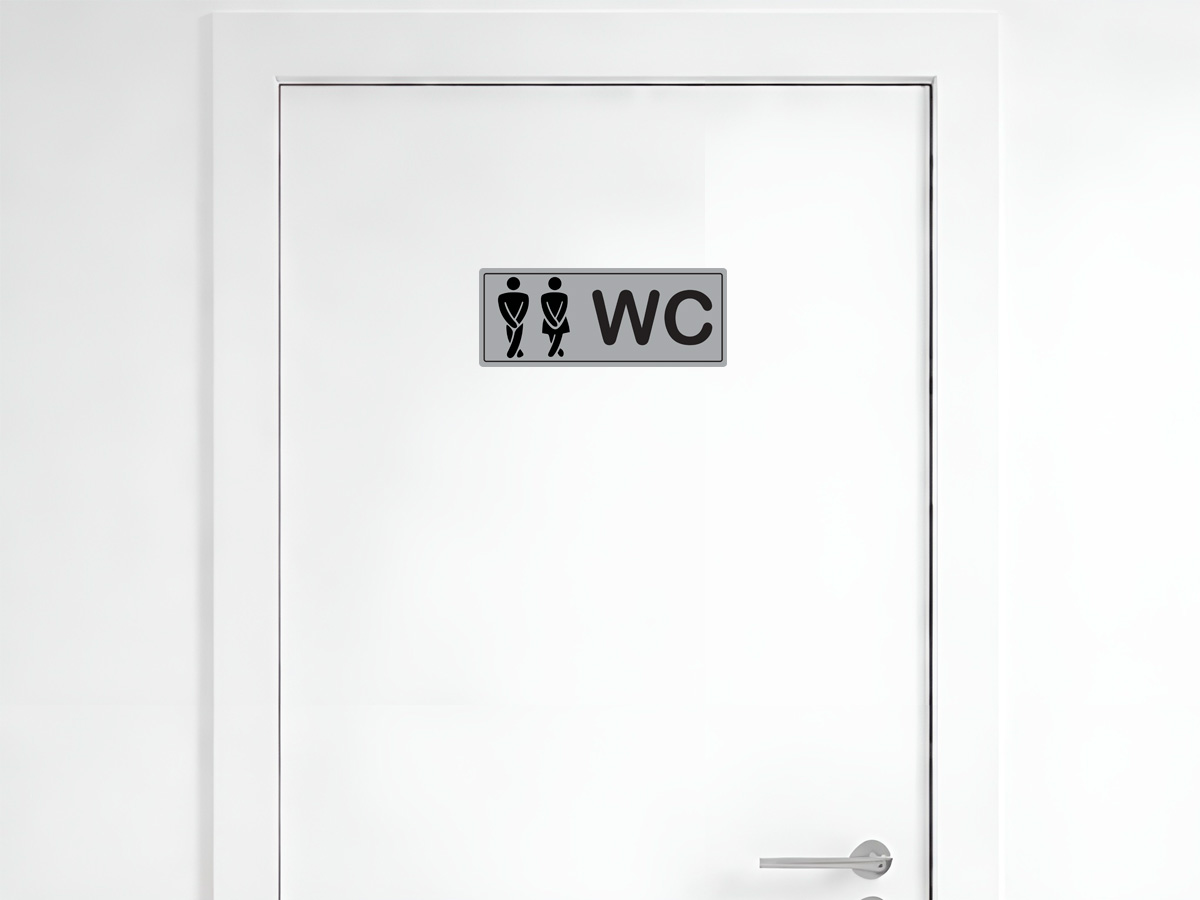 Табела WC от ABS с UV печат и пиктограми за мъже и жени. Лека, здрава и устойчива. Монтаж с двойнозалепваща лепенка – без пробиване. Два размера – 17х6 и 20х8см.
